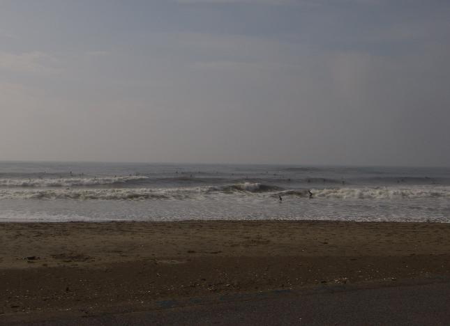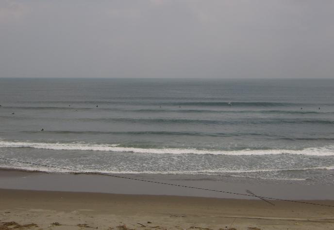 ここ八日市場のインサイドは中央の方では侵食されてビーチがなく、いきなりコンクリートの段々?になっているのでインサイドまで乗り継ぐのは危険と思いボクはミドル付近でプルアウトしてアウトへ行こうと。。。。