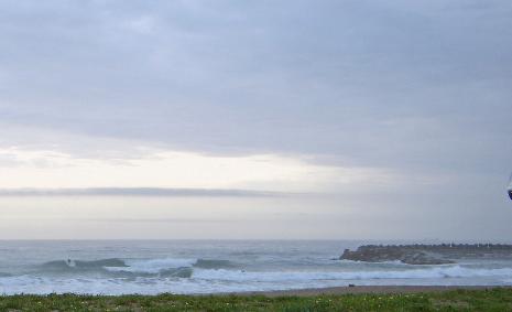 着いた先は鴨川辺り。サイズは1サイズアップくらいのモモ~コシだったかな?でも潮回りが大潮で時間的にロータイドだった為、かなりインサイド波は割れていました。なのでここでは入水せず、更に更に南へ。